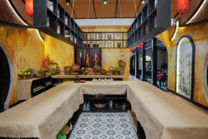 Khu vực không gian mở tại CHAY Ý mang đến cảm giác thoáng đãng, nhẹ nhàng. Ánh sáng tự nhiên chan hòa, kết hợp cùng sắc màu trầm ấm của nội thất, giúp thực khách cảm nhận rõ sự thư giãn ngay từ khi bước vào.